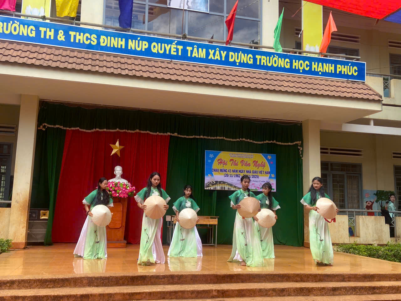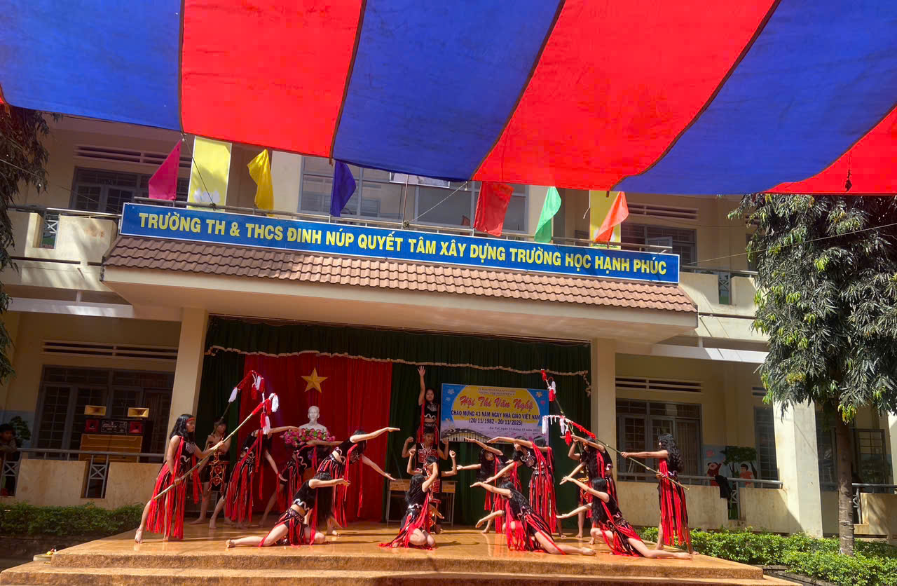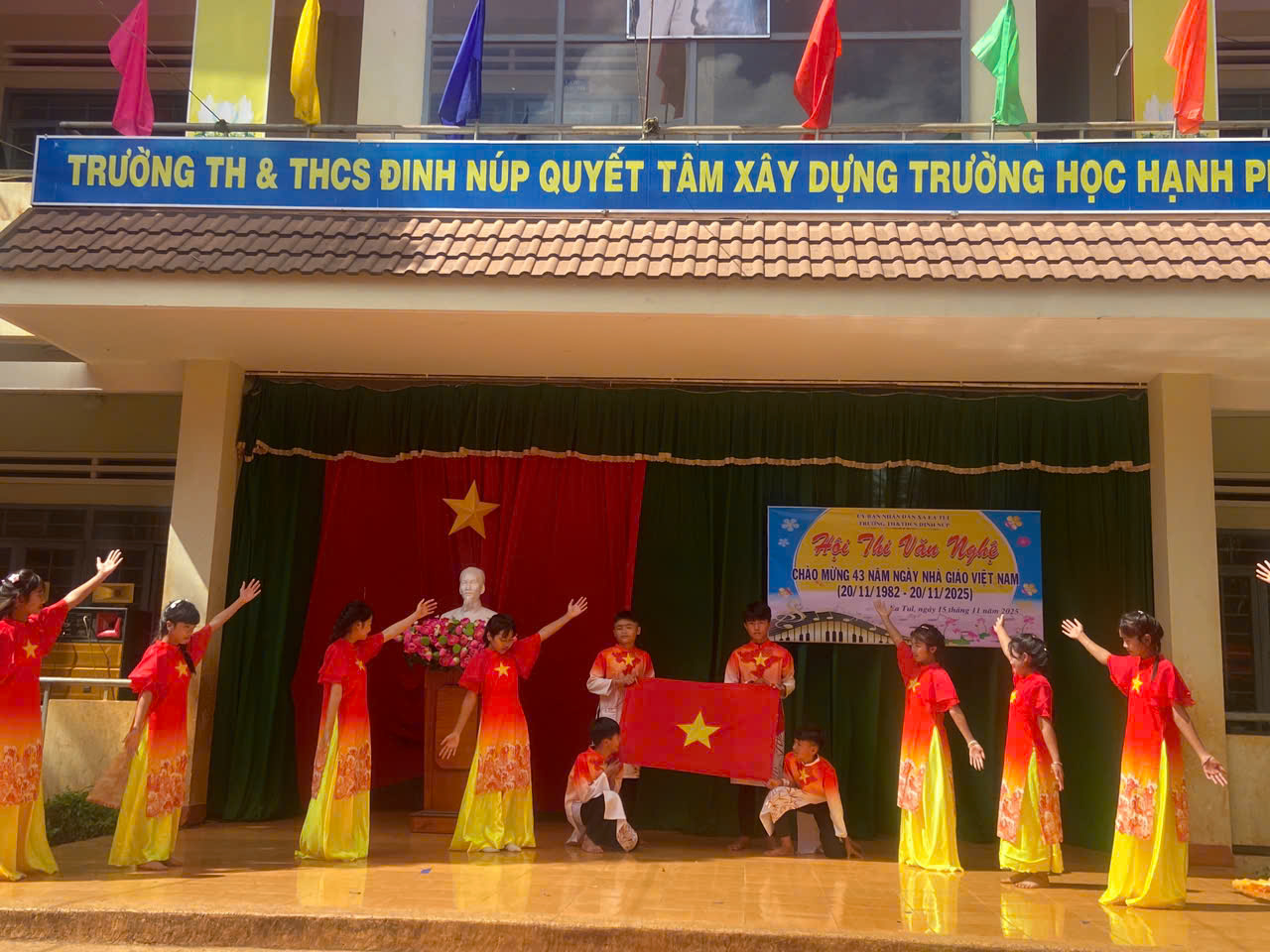 Những ngày này, không khí tại các trường học sôi nổi với chuỗi hoạt động kỷ niệm 43 năm Ngày Nhà giáo Việt Nam (20/11/1982 – 20/11/2025). Từ phong trào “giờ học tốt”, đến các chương trình văn nghệ, được tổ chức ý nghĩa, thiết thực, tri ân công lao của các thầy, cô giáo, tăng cường tình cảm gắn kết thầy trò. Hòa chung không khí trang trọng và ấm áp đó, Trường TH&THCS Đinh Núp đã tổ chức thành công chuỗi hoạt động kỷ niệm sâu sắc, ý nghĩa, thể hiện truyền thống “Tôn sư trọng đạo” tốt đẹp của dân tộc.