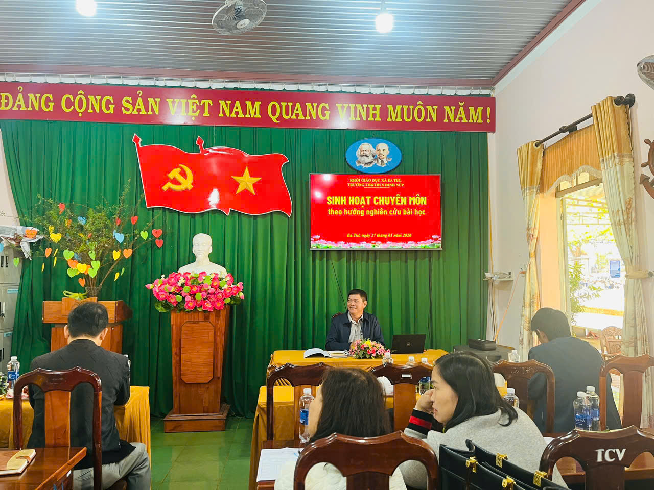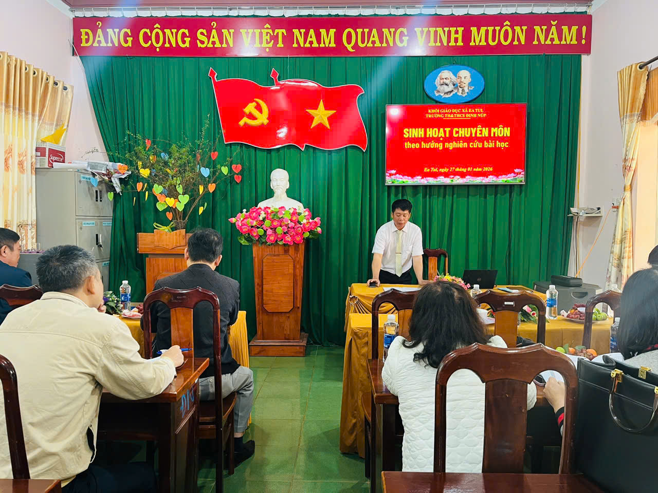 Ngày 27/01/2026, tổ Khoa học Xã hội trường TH&THCS Đinh Núp đã tổ chức thành công tiết dạy nghiên cứu nội dung bài học cấp khối THCS tại xã EaTul do thầy giáo Trương Văn Linh Tổ trưởng, giáo viên phân môn Lịch sử thực hiện. Về dự tiết dạy gồm có Hiệu trưởng, Phó Hiệu trưởng và các giáo viên trực tiếp giảng dạy bộ môn LS&ĐL thuộc phân môn lịch sử của các trường THCS xã EaTul. Buổi sinh hoạt chuyên môn diễn ra trong không khí sôi nổi, nghiêm túc và mang tính học hỏi cao. Với sự chủ trì của thầy giáo Hoàng Nghĩa Quang Bí thư Chi bộ, Hiệu trưởng nhà trường đã được CBQL, giáo viên về dự đã cùng nhau trao đổi, thảo luận về phương pháp giảng dạy, cách tổ chức hoạt động học tập cho học sinh, cũng như chia sẻ kinh nghiệm thực tiễn trong quá trình giảng dạy. Hoạt động này góp phần nâng cao chất lượng chuyên môn, thúc đẩy tinh thần đổi mới sáng tạo trong dạy học, hướng tới mục tiêu nâng cao hiệu quả giáo dục toàn diện cho học sinh.