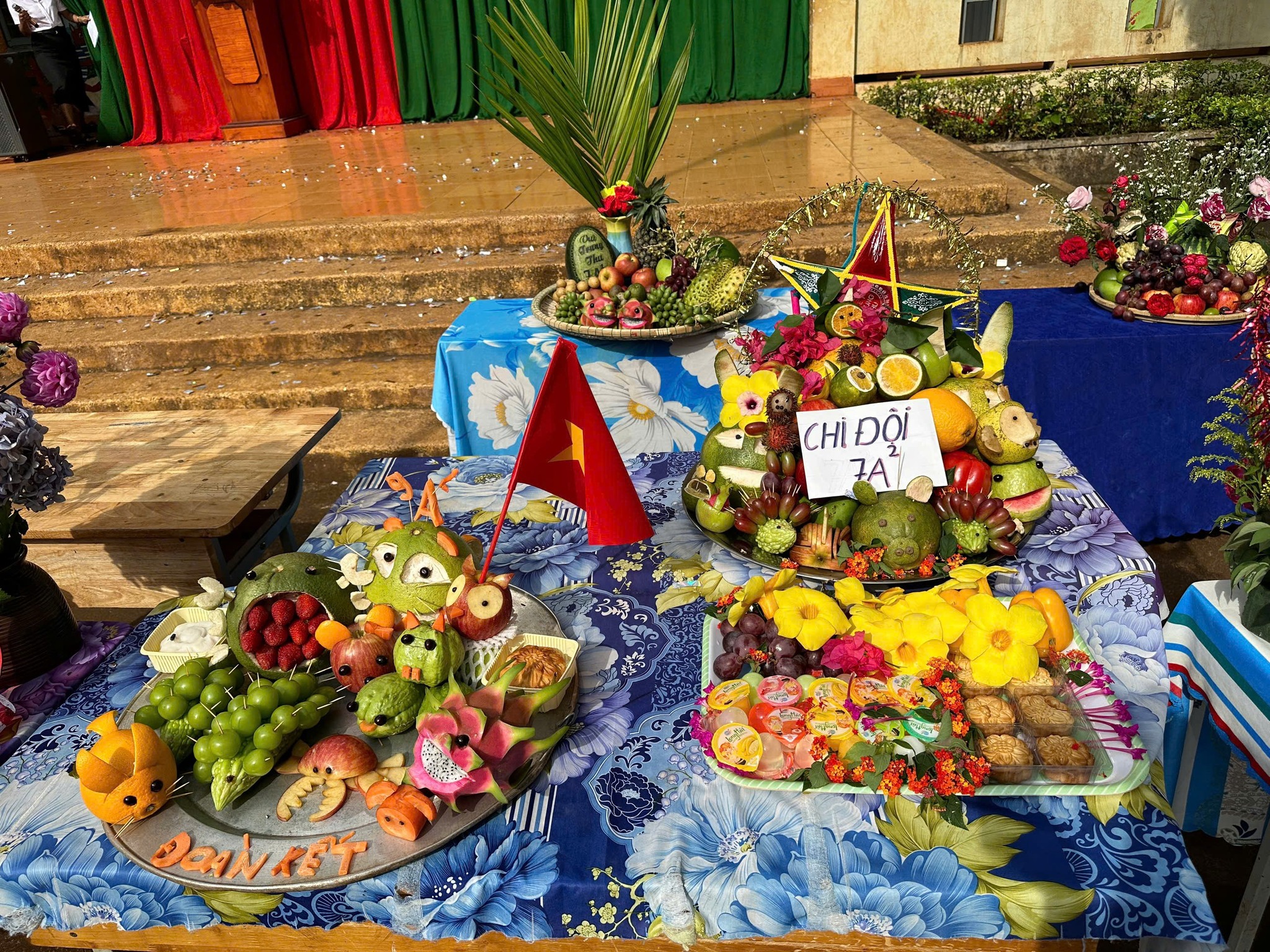 Trong chương trình, các em được hòa mình vào không gian lễ hội Trung Thu truyền thống với nhiều hoạt động đặc sắc: thưởng thức màn múa lân sôi động, tham gia hội thi làm lồng đèn sáng tạo, cùng nhau bày biện mâm ngũ quả đậm nét văn hóa dân gian. Những hoạt động ấy không chỉ đem đến niềm vui, sự háo hức mà còn khơi dậy tinh thần đoàn kết, sự khéo léo và khả năng sáng tạo của các em học sinh.